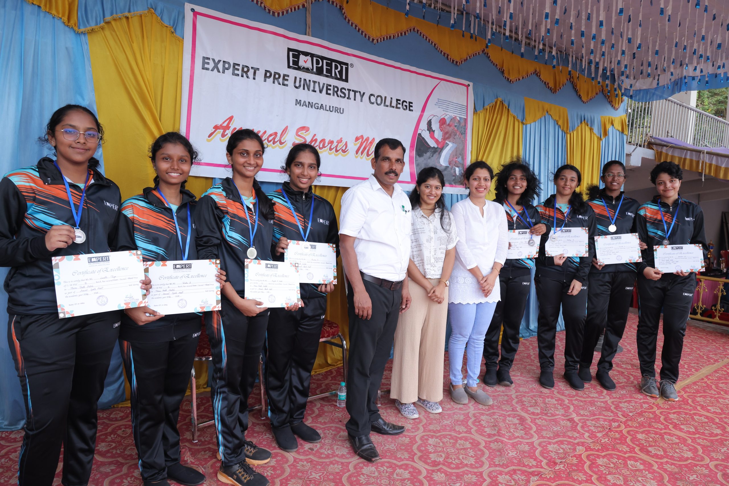 The Valedictory function at 5:00 PM was done by MS.Anagha Pai , Professional Badminton Player recognized the outstanding performances of the day. Medals and trophies were awarded to the winners of various events. The day ended with a thank-you speech, emphasizing the importance of sportsmanship and participation.